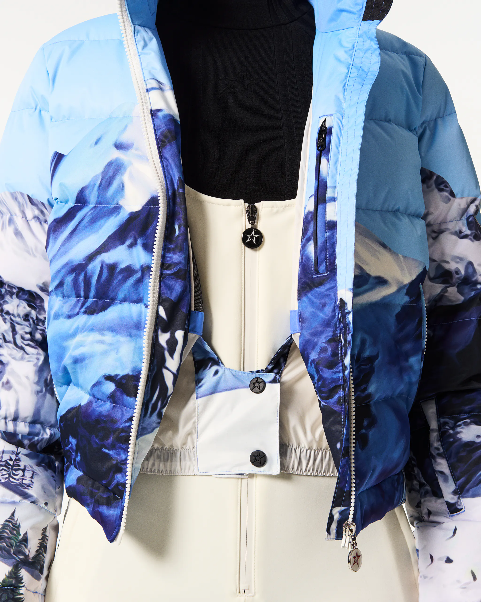 Our bestselling ski jacket returns for AW25—reengineered for even greater performance. The Polar Flare Ski Jacket is a Perfect Moment icon, known for its cropped, flared silhouette and flattering, feminine fit. Crafted from high-performance fabric, it’s fully water resistant and insulated with 700-fill-power down for serious warmth. This season, it’s reimagined in a mountain landscape print, capturing the view from the ski lift and the spirit of the slopes. Slope-ready features include a snap-down puller to lock the zip, high-neck collar, helmet-compatible hood, and adjustable snow skirt. With RECCO® technology and a full suite of internal and external pockets, it’s no wonder this is our number one bestseller.