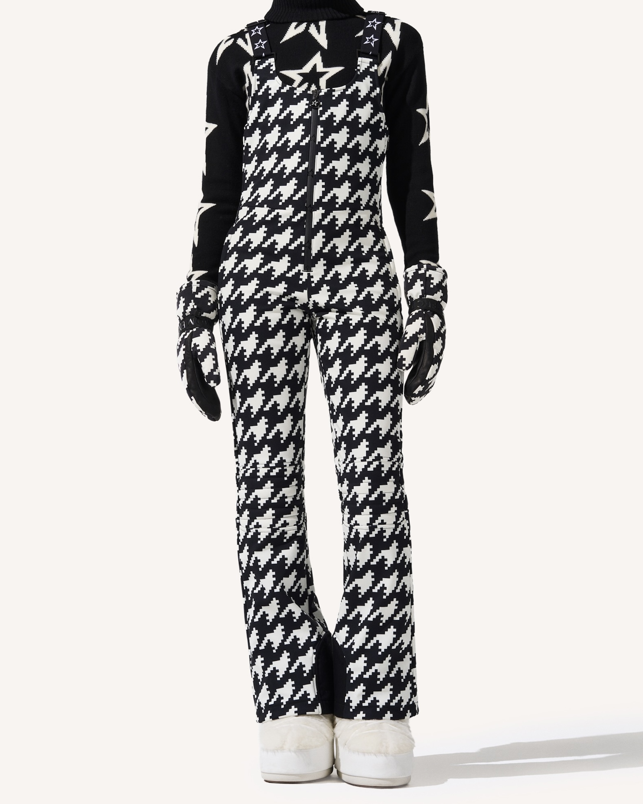 Designed for freedom of movement and all-day comfort, our flared ski bib pant combines a sleek silhouette with technical performance. The flattering shape hugs through the waist and flares gently from the knee, while adjustable suspender straps offer a secure fit. Crafted from Toray Dermizax™ fabric with 4-way stretch and a thermal fleece lining, these pants deliver water resistance, breathability, warmth, and ease of movement on the slopes. Snow gaiters, boot-friendly zipped hems, and anti-tear guards provide added protection where it counts. Style with a base layer on milder days or layer up with a Merino knit when the temperature drops.