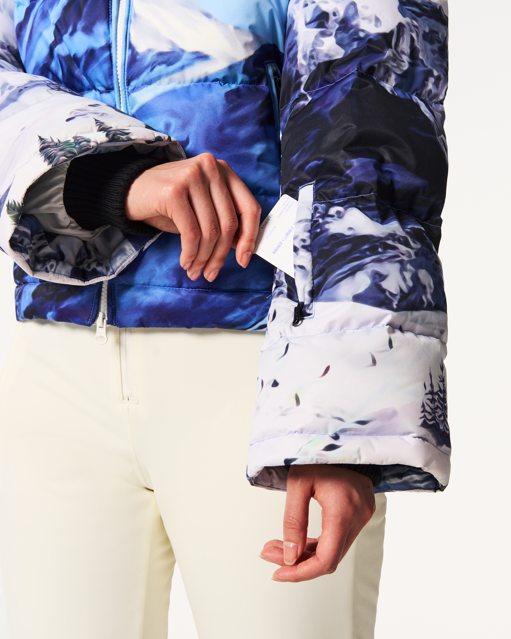 Our bestselling ski jacket returns for AW25—reengineered for even greater performance. The Polar Flare Ski Jacket is a Perfect Moment icon, known for its cropped, flared silhouette and flattering, feminine fit. Crafted from high-performance fabric, it’s fully water resistant and insulated with 700-fill-power down for serious warmth. This season, it’s reimagined in a mountain landscape print, capturing the view from the ski lift and the spirit of the slopes. Slope-ready features include a snap-down puller to lock the zip, high-neck collar, helmet-compatible hood, and adjustable snow skirt. With RECCO® technology and a full suite of internal and external pockets, it’s no wonder this is our number one bestseller.